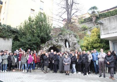 Photo Gallery Home Photo Gallery L'ARTISTA LEONARDO GERMINARIO E IL DONO DEL PRESEPE AL C.F.P. L'ARTISTA LEONARDO GERMINARIO E IL DONO DEL PRESEPE AL C.F.P. Leonardo Germinario, in arte Leo Germi, della classe 1926, nasce a di Santeramo in Colle (Ba). La sua passione per l’arte sboccia da bambino accompagnando il nonno Erasmo dal parrucchiere per poter guardare le opere di cartapesta presenti nel retrobottega. Il parrucchiere infatti, amante dell’arte della cartapesta, aveva trasformato il magazzino del negozio in un vero studio artistico, e qui il piccolo Leonardo poteva osservare dei piccoli capolavori. Amante dell’arte ha ricevuto la passione per il presepe da uno zio. Ogni anno Leonardo era il primo ad essere chiamato per aiutarlo nella realizzazione. Il giorno di natale si svolgeva poi l’inaugurazione; i nipoti in fila portavano il Bambinello fino alla sua culla. Da allora la passione in Leonardo ha continuato a crescere e gli studi di architettura gli hanno permesso di realizzare presepi di grande bellezza. Il suo primo presepe l’ha realizzato in una taverna romana a Poggiorsini. E da lì ogni natale prepara piccoli presepi da regalare. Negli anni 50, quando si trasferisce a Como, inizia i corsi presso l’Accademia di Brera, raffinando ulteriormente la sua competenza tecnica e artistica. Dopo aver realizzato parecchi presepi nella Provincia di Como (Basilica del Crocifisso, Ospedale Valduce) e in Svizzera (Chiesa di Fatima in Chiasso), dai primi giorni di novembre il signor Leo, si sta dedicando alla costruzione del presepe nella grotta della Madonna di Lourdes nel C.F.P. di Como, iniziando dal paesaggio con carta, cartone e colla. Colori e accessori hanno arricchito l’opera. Gli allievi del C.F.P. guidati dagli insegnanti hanno avuto l’occasione di incontrare l’artista al lavoro. In questo modo hanno potuto conoscere le sue tecniche artistiche e soprattutto quella passione del fare che negli anni non è mai venuta meno ma che anzi lo ha portato a sfidare il freddo e la fatica per realizzare un sogno personale. Il Direttore e tutti i suoi collaboratori insieme agli allievi e alle sue nipoti sono grati a Leo per aver dato la propria disponibilità e per aver donato anche al C.F.P. una delle sue opere, che diventerà patrimonio dell’Istituto. Torna indietro Condividi Su E-mailFacebookTwitterLinkedIn Gallery