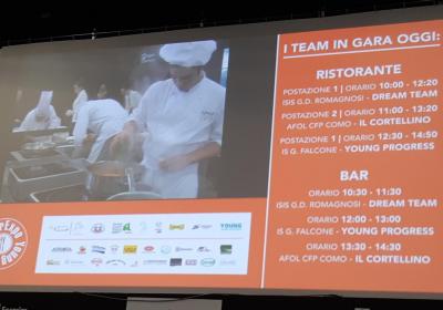 Photo Gallery Home Photo Gallery RISTOREXPO 2019 RISTOREXPO 2019 Il CFP di Como ha partecipato al concorso Young Cup, promosso dall’Associazione Cuochi di Como nell’ambito della manifestazione Ristorexpo, con il team “Il Cortellino”, composto dagli allievi Scuderi Laura, Accursio Andrea, Bona Alex (cucina), Tortorici Giorgia, Di Amico Giando Daniele, Rizzo Pasquale, Del Greco Emilia, Adam Cristina Paula (sala e bar) delle classi 3^ e 4^, coordinati dai docenti Luca Molteni (CHEF di cucina), Roberto Piatti e Loris Mondini (Maitre di Sala Bar e Ristorante). Gli allievi della contest di sopra hanno riportato la vittoria del secondo premio assoluto (medaglia d’argento). La classe 4^ pasticceria con il docente Loris Mondini ha preparato il progetto per la parte del concorso “Nuova Impresa”, conseguendo il primo premio assoluto (medaglia d’oro). La giuria ha espresso vivi Complimenti ai ragazzi e ai docenti. Qui di seguito alcuni scatti della manifestazione Torna indietro Condividi Su E-mailFacebookTwitterLinkedIn Gallery