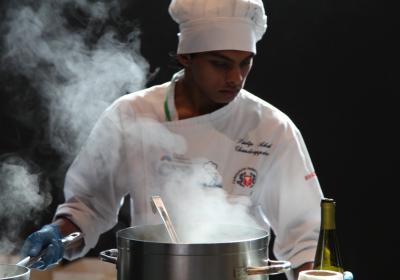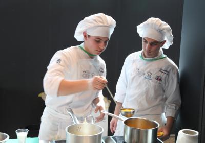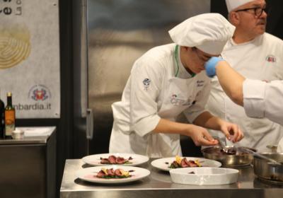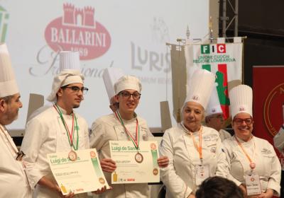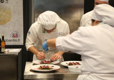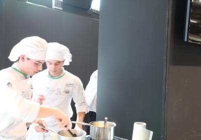 Photo Gallery Home Photo Gallery RISTOREXPO 2025 RISTOREXPO 2025 Il CFP di Como ha partecipato all'appuntamento annuale con Lariofiere al Salone di RistorExpo. Quest'anno il tema del settore della ristorazione è stato "Ripartiamo dagli Odori".Le classi quarte hanno partecipato alla conferenza del giorno 5 marzo tenuta dallo Chef bistellato Davide Oldani del D'O e del Ristorante OLMO di Cornaredo (MI), che ha parlato ai giovani della professione del cuoco e del cameriere facendoli avvicinare con interesse e coinvolgimento al lavoro ed evidenziando come la passione porti a gradi traguardi. Presente alla conferenza anche lo chef stellato Mauro Elli del Cantuccio di Albavilla (CO).Per quanto riguarda le competizioni, gli allievi del CFP hanno vinto l'Oro assoluto per la cucina nel concorso nazionale "Cesare Chessorti": la cucina del CFP è stata riconosciuta la migliore tra venti scuole italiane. Oltre al riconoscimento nel concorso a squadre, tre oro per i risotti, argento per la sala e bronzo per il cocktail nei concorsi di giornata. Grande e meritata soddisfazione per l'edizione 2025 di Ristorexpo.Qui di seguito la GALLERY dell'evento e le foto più rappresentative della premiazione. Torna indietro Condividi Su E-mailFacebookTwitterLinkedIn Gallery