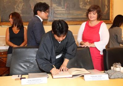 News & Eventi Home News & Eventi ASSAGGI DI GIAPPONE IN CUCINA 05/09/2017 ASSAGGI DI GIAPPONE IN CUCINA Continua la collaborazione tra il C.F.P. di Como, i cuochi della città gemella di Tokamachi e l’Associazione Provinciale Cuochi di Como. Per la prima volta nel contesto della fiera cittadina di Sant'Abbondio sarà possibile fare esperienza di “Assaggi di Giappone in cucina”. Diverse le proposte in programma a partire da giovedì 31 agosto fino a domenica 3 settembre. Obento (cene di giovedì 31 agosto e sabato 2 settembre e pranzo di domenica 3 settembre). Per tutti la possibilità di assaporare uno dei piatti tradizionali della cucina giapponese. Obento è la scatola contenente un pasto completo, solitamente il pranzo, che i giapponesi usano portare con loro quando non hanno tempo da dedicare alla preparazione del cibo. Ingrediente principe del box proposto alla fiera è il riso “Uonoma Koshihikari”, il migliore del Giappone e prodotto nella città di Tokamachi. Con la dimostrazione sulla cucina giapponese (giovedì e sabato mattina dalle 9:45 alle 11:45) i cuochi di Tokamachi aiutati da alcuni studenti del C.F.P. presenteranno la preparazione di alcuni piatti giapponesi a cui seguirà la degustazione degli stessi. Non solo cucina ma anche arte. Nel pomeriggio di sabato 2 settembre dalle 16 alle 18 presso il Broletto sarà presentato un seminario di Ukiyoe, stampa tradizionale giapponese risalente al XVII secolo che utilizza matrici in legno per imprimere il soggetto da riprodurre sul foglio di carta. Al termine sarà offerto un aperitivo in stile giapponese (Per informazioni: miciscirube2@gmail.com). L’iniziativa di presentare la cucina giapponese all’interno della fiera di sant’Abbondio nasce in seguito ad uno scambio formativo tra C.F.P. di Como e i ristoranti nipponici. Già lo scorso anno due studenti hanno avuto l’occasione di lavorare in alcune aziende di Tokamachi e Tokyo per sette settimane. All’interno del percorso di preparazione professionale la tappa giapponese è infatti scelta obbligata per tutti coloro che vogliono intraprendere una carriera professionale per diventare grande cuoco. Grazie all’ottima esperienza riportata dagli studenti e del rapporto sempre più stretto che lega i membri del progetto, puntualmente sostenuti dalla mediazione dell’associazione Miciscirube, altri due studenti partiranno il prossimo mese di marzo verso il Sol Levante. Anche per loro la possibilità di acquisire le peculiarità della cucina giapponese per sette settimane. Qui di seguito trovate la Brochure dell'Evento e alcuni scatti dello scambio formativo tra C.F.P. di Como e la delegazione giapoonese delle città di Tokyo e Tokamachi, avvenuto il 30 agosto 2017 alla presenza del Sindaco Mario Landriscina, del Presidente e Direttore del Centro, dell'Associazione Famiglia Comasca e Associazione Miciscirube. Servizio Su "COMO NEWS24 - CIAOCOMO" - Fiera di Sant'Abbondio Torna indietro Condividi Su E-mailFacebookTwitterLinkedIn Download Brochure pieghevole 3 eventi ASSAGGI DI GIAPPONE (827.09 KB) Gallery