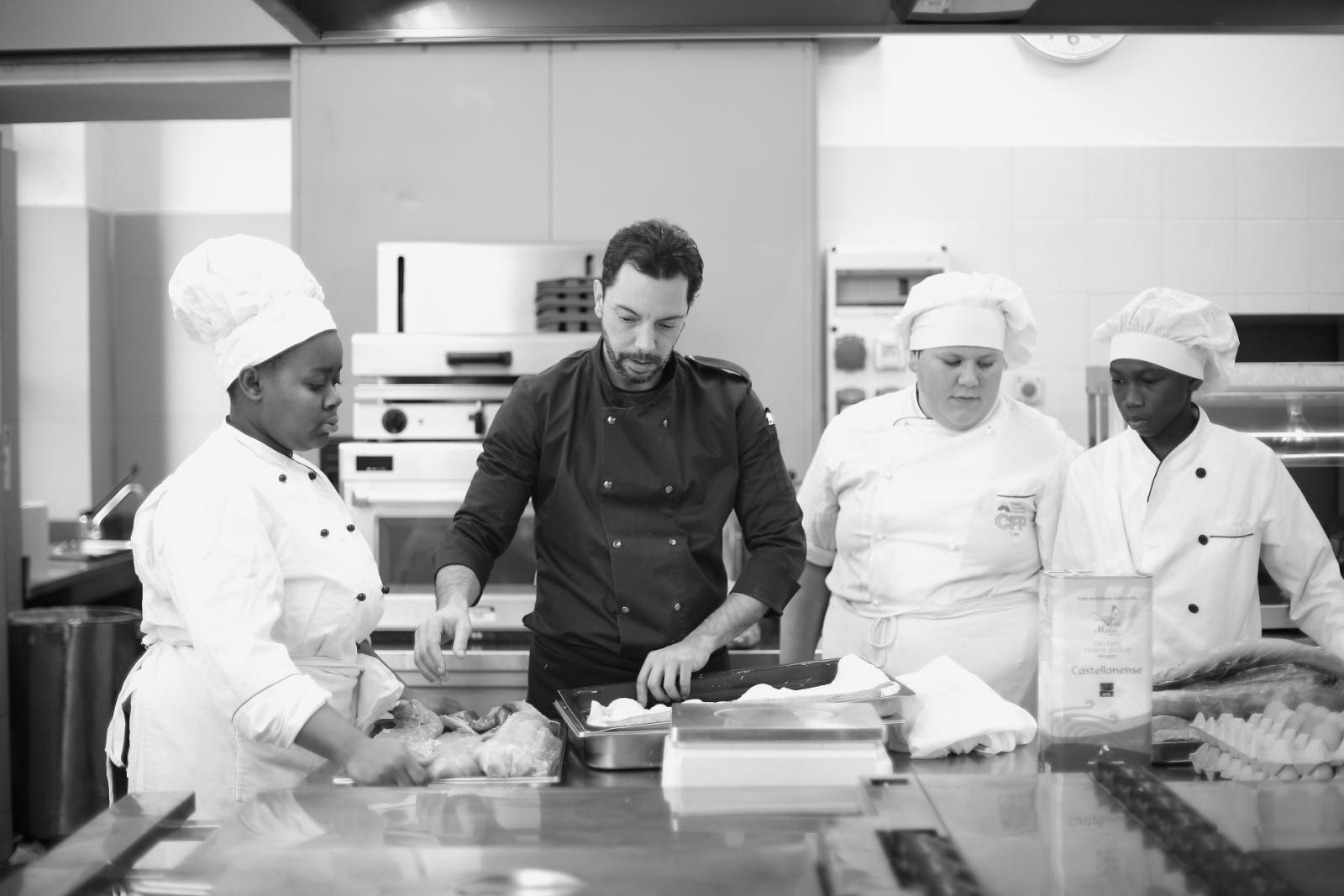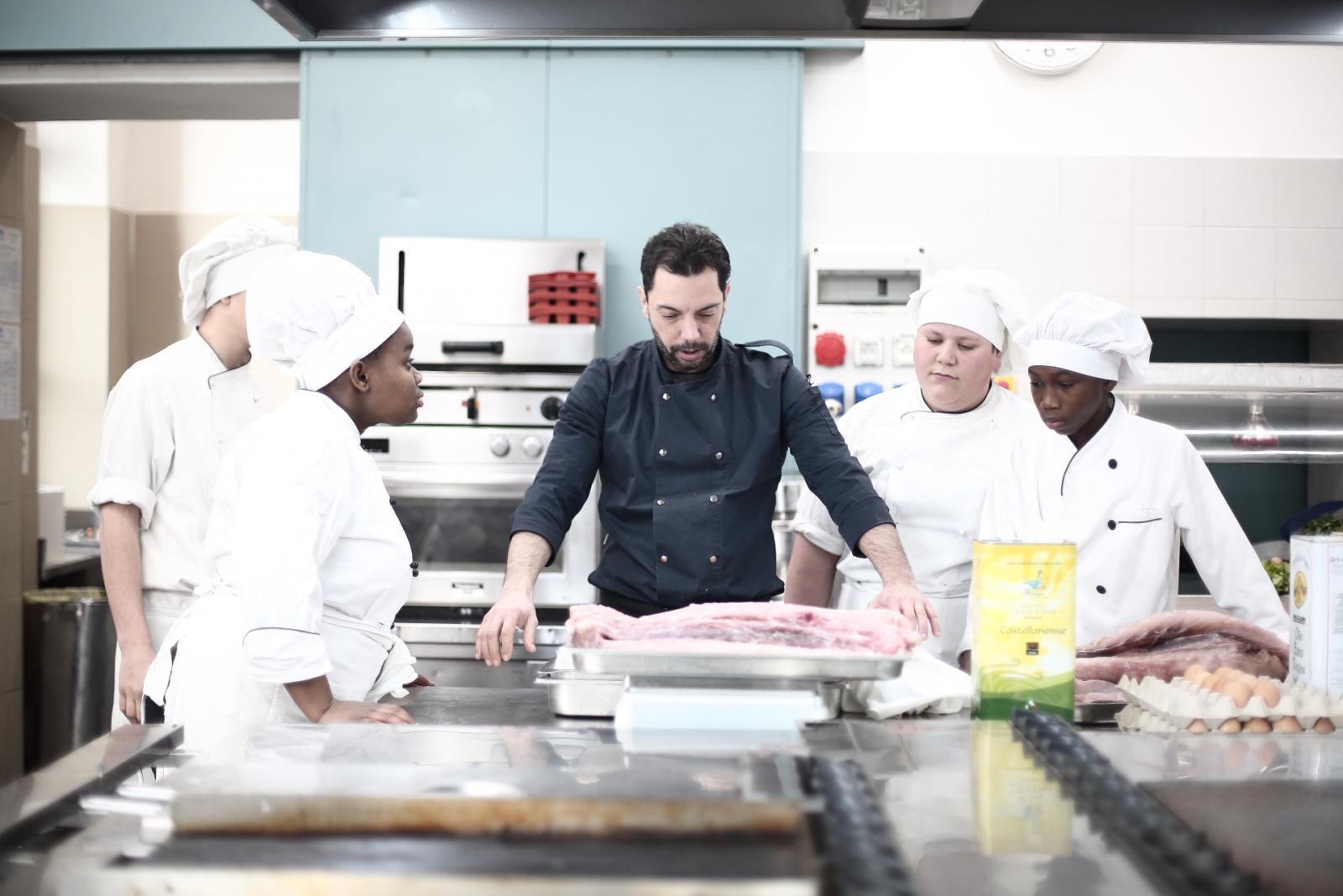 Photo Gallery Home Photo Gallery GRANDI CHEF AL CFP: VINCENZO CAROLA GRANDI CHEF AL CFP: VINCENZO CAROLA Grandi nomi della cucina italiana al CFP di Como. Protagonisti gli studenti dei corsi di Cucina e Sala del Centro di Formazione Professionale che, nelle giornate del 30 e 31 gennaio hanno affiancato lo chef Cilentino Vincenzo Carola, ospite a Como. Il menu 360° di Ricciola racchiude in sè tutto lo spirito e l'anima del SUD Italia, dove lo spreco non è contemplato e la "materia prima" è rispettata, lavorata ed esaltata nella sua essenza. Lo Chef Cilentino, al terzo appuntamento annuale come ospite a Como, è titolare dello storico e rinomato ristorante "Vecchio Saracino" di Agropoli. La famiglia Carola, ormai da quattro generazioni porta avanti la tradizione del pesce di mare in una zona che è patrimonio UNESCO (Vallo di Diano). Piatti semplici ma carichi di gusto che raccontano la cucina cilentina influenzata dalla tradizione saracena. Il percorso di degustazione è iniziato una aperitivo di benvenuto: Polpette di patate, Alici di Menaica e pappacelle, Focaccia al limoncello con patè di fegato di Ricciola. Antipasto a base di Crudo di Ricciola, fagioli di Controne, cumino e limone come, primo piatto con Conchiglie di grano duro, guancia e ventresca di Ricciola, uvetta, pinoli e porri caramellati al Lucano e per finire Trancio di Ricciola, solera di aceto balsamico "1920", olive affumicate e rosmarino. Interessante il dolce: Croccante di amaretti in semifreddo, sciroppo di agrumi e zenzero. La cena è stata accompagnata da Vini del SUD Italia, rispettando il territorio e la tradizione. Gli ospiti, sempre numerosi in questi appuntamenti hanno gradito la Cena e ascoltato con piacere la spiegazione del Menu da parte dello Chef che, al termine della serata, ha ringraziato i commensali e gli allievi che lo hanno aiutato in questo evento. Qui di seguito gli scatti della serata Torna indietro Condividi Su E-mailFacebookTwitterLinkedIn Gallery