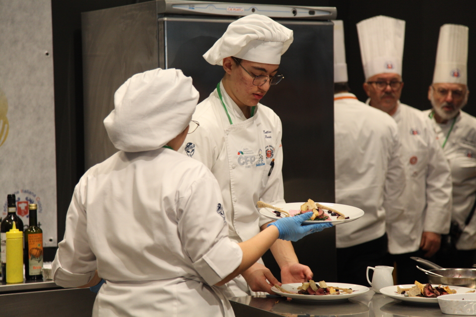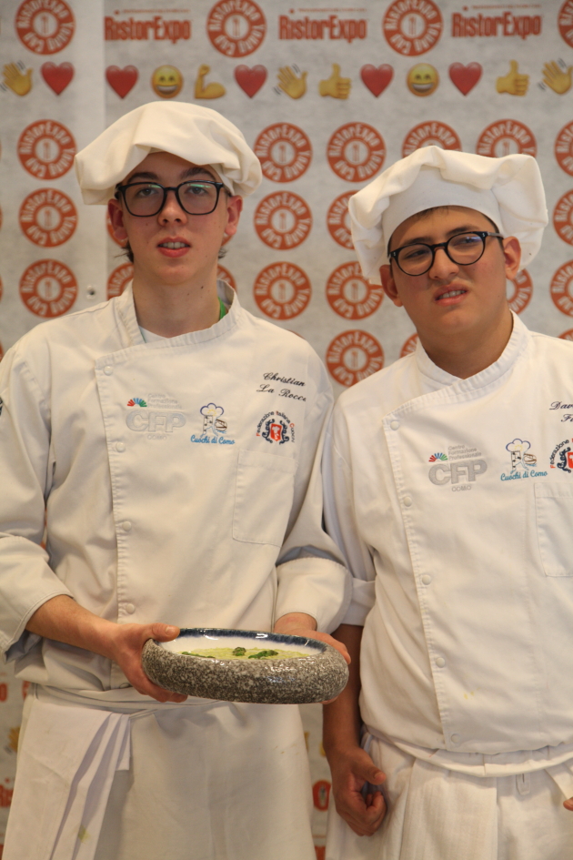 Photo Gallery Home Photo Gallery RISTOREXPO 2025 RISTOREXPO 2025 Il CFP di Como ha partecipato all'appuntamento annuale con Lariofiere al Salone di RistorExpo. Quest'anno il tema del settore della ristorazione è stato "Ripartiamo dagli Odori".Le classi quarte hanno partecipato alla conferenza del giorno 5 marzo tenuta dallo Chef bistellato Davide Oldani del D'O e del Ristorante OLMO di Cornaredo (MI), che ha parlato ai giovani della professione del cuoco e del cameriere facendoli avvicinare con interesse e coinvolgimento al lavoro ed evidenziando come la passione porti a gradi traguardi. Presente alla conferenza anche lo chef stellato Mauro Elli del Cantuccio di Albavilla (CO).Per quanto riguarda le competizioni, gli allievi del CFP hanno vinto l'Oro assoluto per la cucina nel concorso nazionale "Cesare Chessorti": la cucina del CFP è stata riconosciuta la migliore tra venti scuole italiane. Oltre al riconoscimento nel concorso a squadre, tre oro per i risotti, argento per la sala e bronzo per il cocktail nei concorsi di giornata. Grande e meritata soddisfazione per l'edizione 2025 di Ristorexpo.Qui di seguito la GALLERY dell'evento e le foto più rappresentative della premiazione. Torna indietro Condividi Su E-mailFacebookTwitterLinkedIn Gallery
