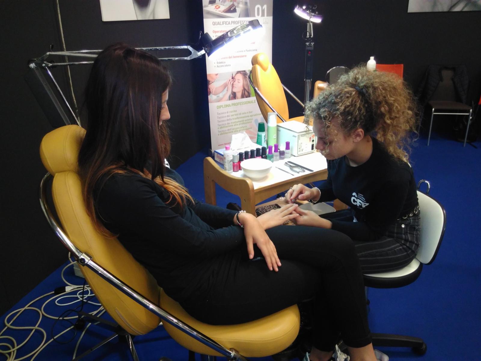 Martedì 15, mercoledì 16 e sabato 19 ottobre 2019, i nostri Allievi di acconciatura, estetica, sala bar e pasticceria, hanno animato lo stand del CFP per dare dimostrazione di alcuni dei servizi caratteristici delle diverse figure professionali, coinvolgendo attivamente i giovani visitatori e fornendo loro informazioni sui percorsi formativi.
